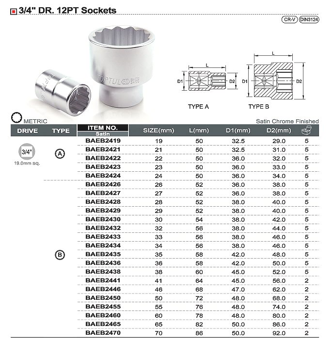 Головки торцевые под квадрат 3/4"