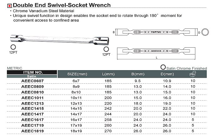 Ключи шарнирные TOPTUL серии AEEC