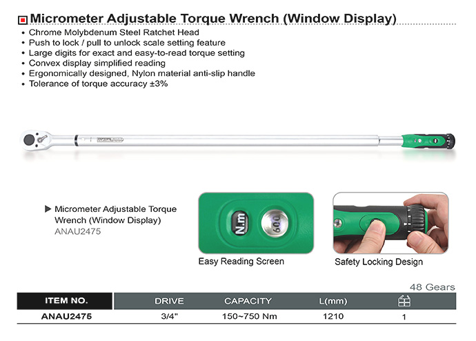 Ключ динамометрический ANAU2475 под квадрат 3/4"