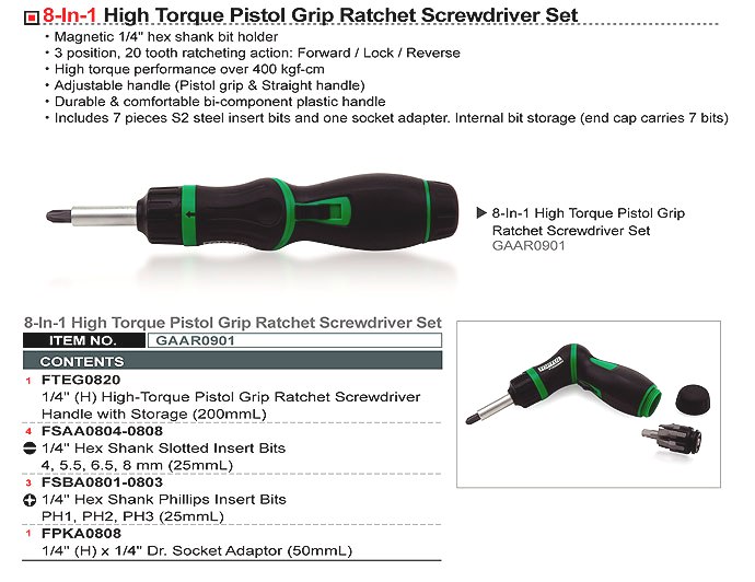 Давно брал подобную, но прямую с трещоткой и четырьмя битами. Поначалу вызывала опасения, своей пластмассовой ручкой. Но годы прошли, а она продолжает служить.