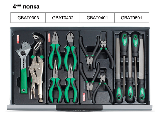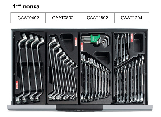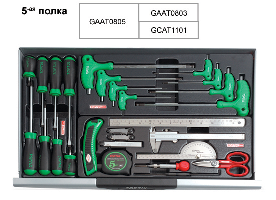 Тележка с инструментом 7 секций 229 ед. TOPTUL GCAJ0008 содержит такой инструмент: