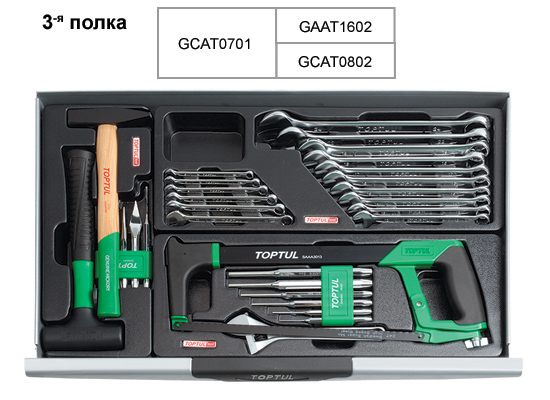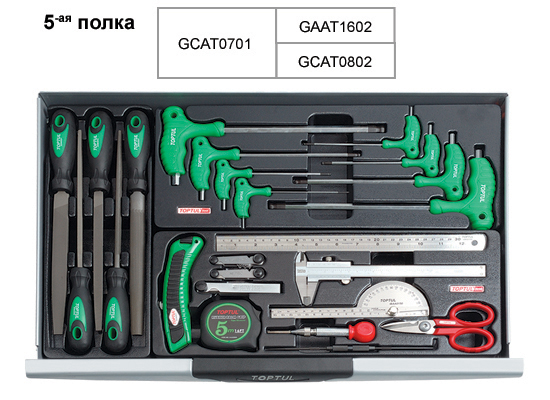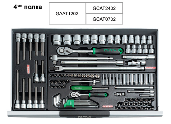 Тележка с инструментом (Pro-Line) 7 секций 227 ед. TOPTUL GCAJ0012 содержит такие инструменты: