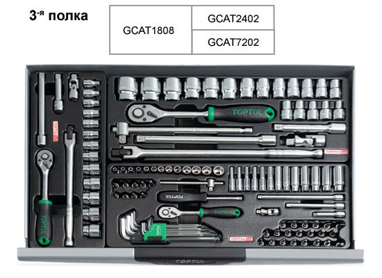Тележка с инструментом (Pro-Line) 7 секций 229 ед. TOPTUL GCAJ0014 содержит такой инструмент: