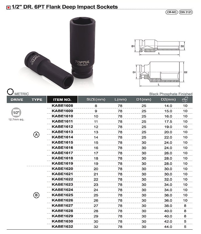 Цены товаров в категории Головки торцевые ударные под квадрат 1/2" длинные