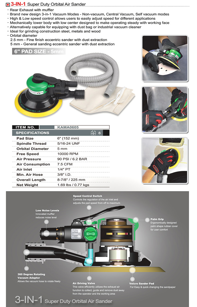 Шлифмашинка орбитальная пневматическая 6" 5мм