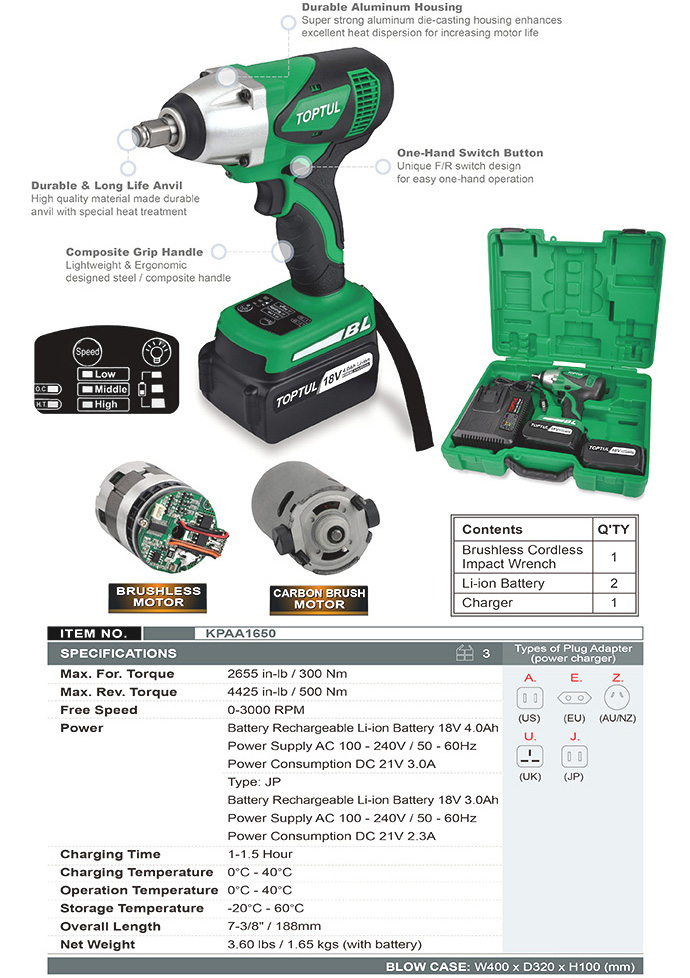 Электрогайковерт ударный 1/2" 500N·m 3000об/мин TOPTUL KPAA1650E