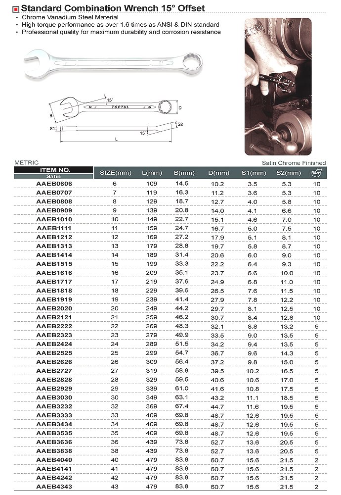 Ціни товарів в категорії Ключі комбіновані TOPTUL серії AAEB